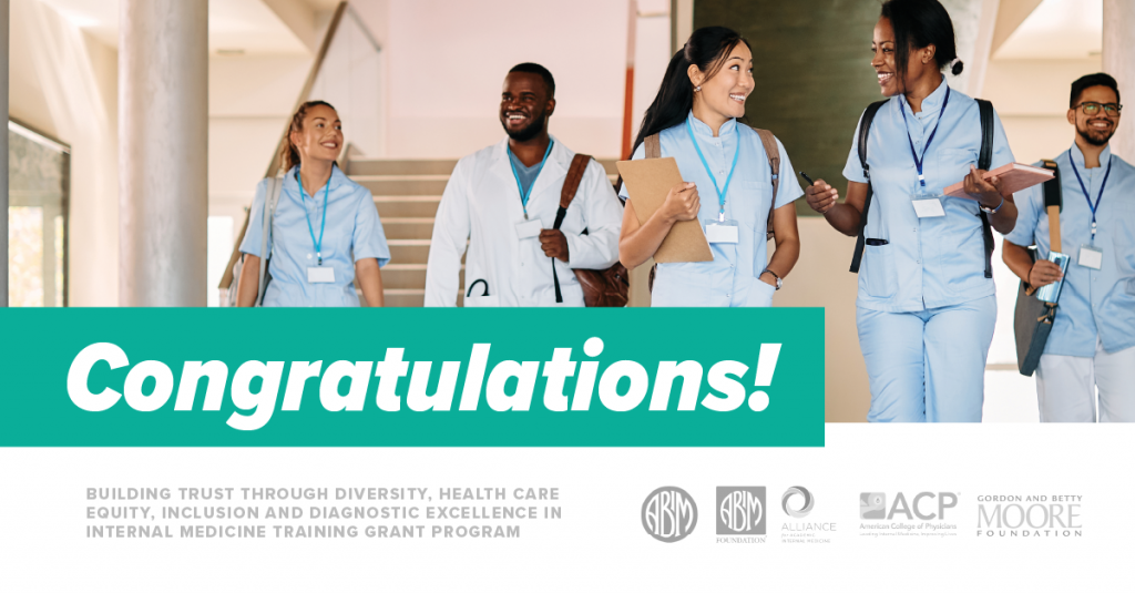 - We’re proud to share that [PI NAME(S)] has received a grant from the ABIM Foundation to advance health equity and build trust in health care. We look forward to the lasting impact this will have on shaping the future of #medicaleducation.